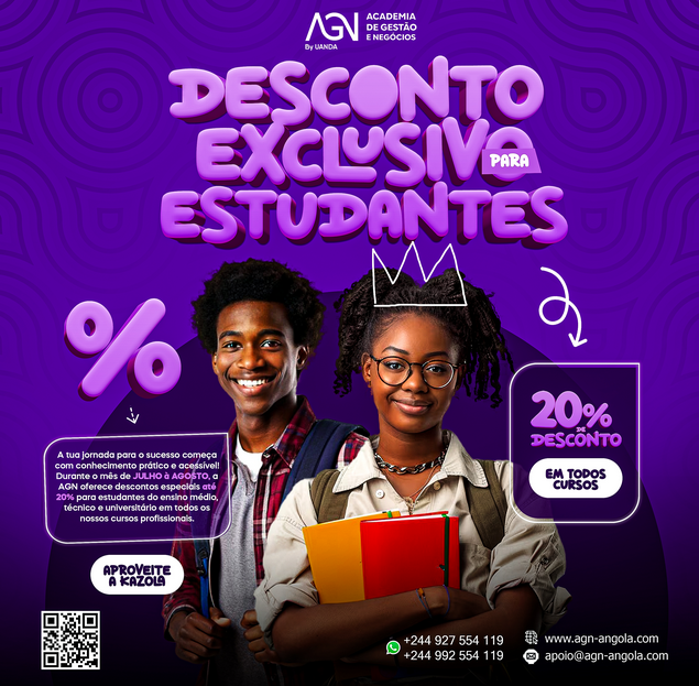 Academia de Gestão e Negócios é um centro de Formação Profissional, unidade de Serviços empresarial da UANDA, (SU)Lda, com NIF:5000787353, lincienciada pelo INEFOP Nº 414.01/LDA/2020. Somos uma Academia de ensino com uma metodologia prática e expiremental com foco no formando.